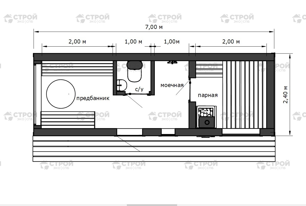 Модель "Флетхаус" 7х3 м. с крыльцом 5х2