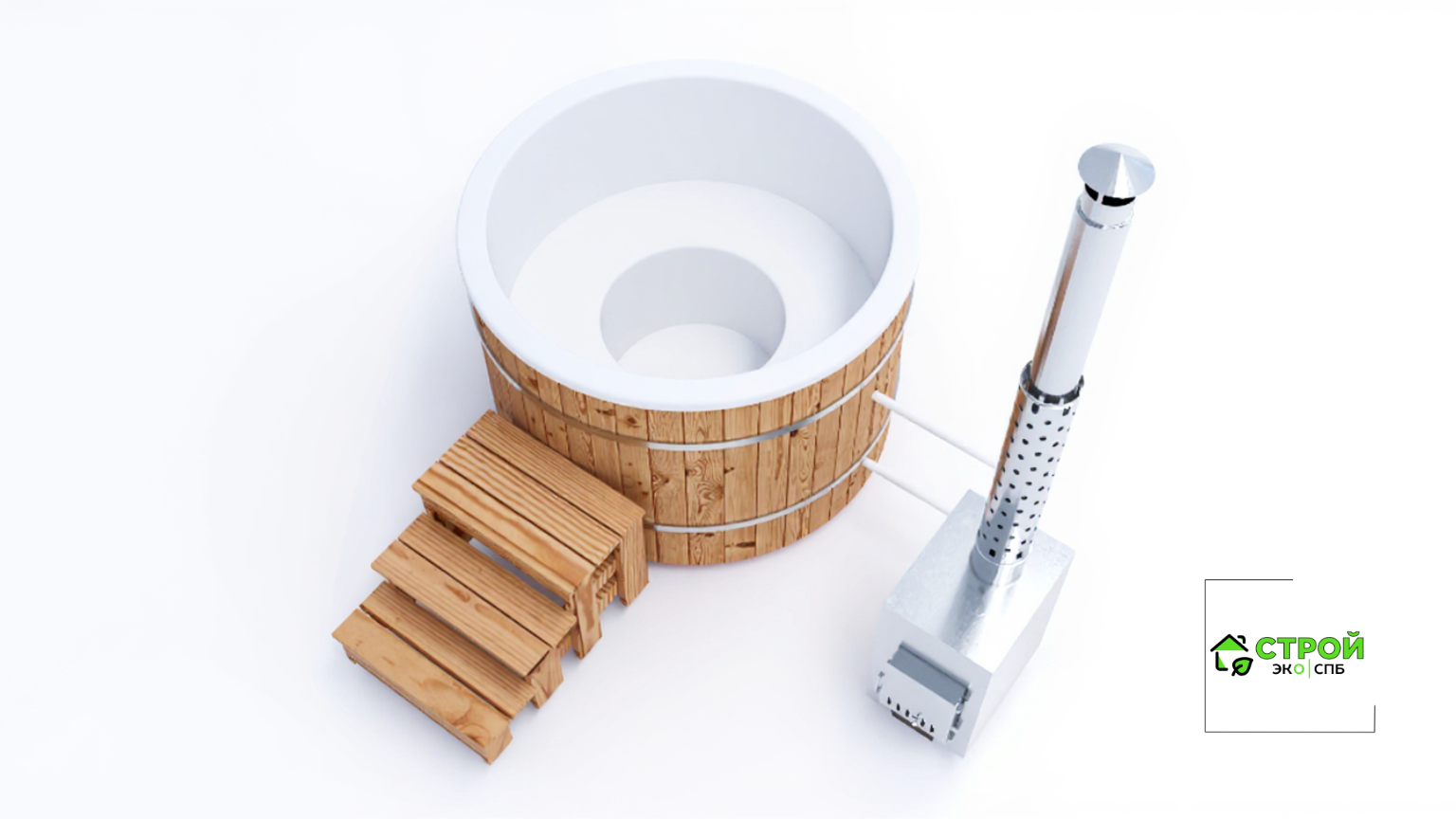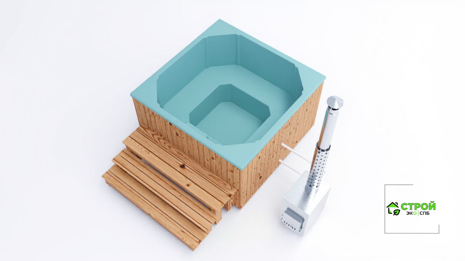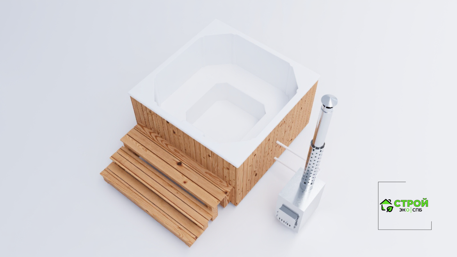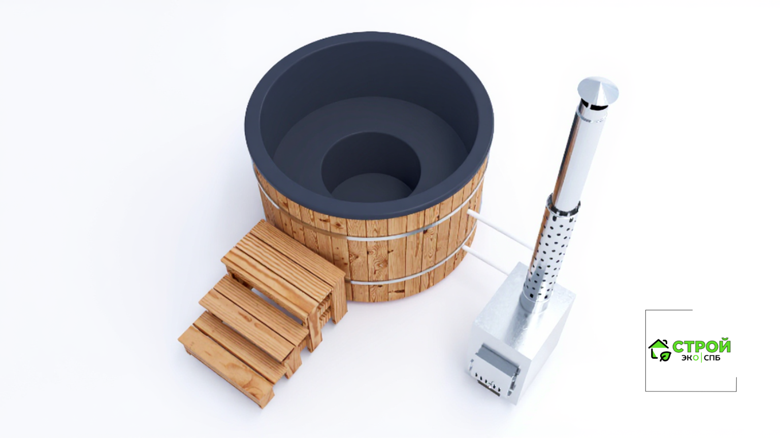 - Лестница - лестница из лиственницы с надежным покрытием террасным маслом. Удобно подниматься в купель, когда она располагается на отдельно стоящей площадке без погружения в террасу.
