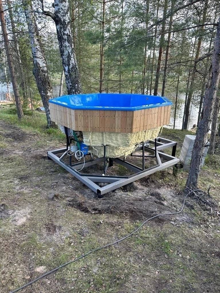 - Обшивка - обшивка каркаса планкен лиственница 20 мм. полностью, для установки купели на открытой площадке. Обработана маслом для террас (цвет на выбор)